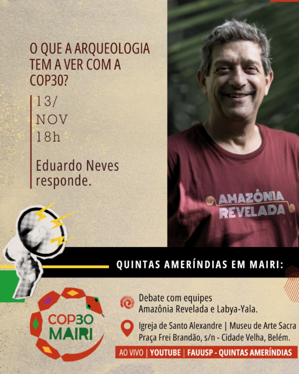 Roda de conversa com Eduardo Neves (USP) e Helena Pinto Lima (Museu Paraense Emílio Goeldi), e com a arquiteta e urbanista Roberta Rodrigues (UFPA)